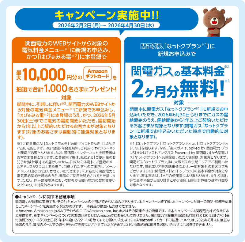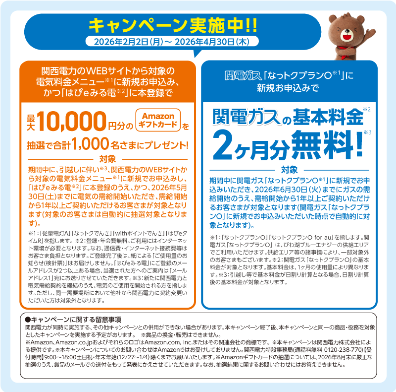 ※電気:関西電力エリアのみお申込みが可能です。