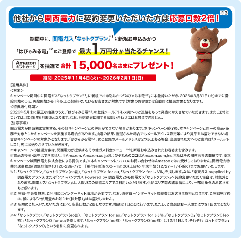 ガスのご契約を関西電力にお切替えのうえ、「なっトクでんき」への契約変更を希望される場合はこちらからお手続きください。